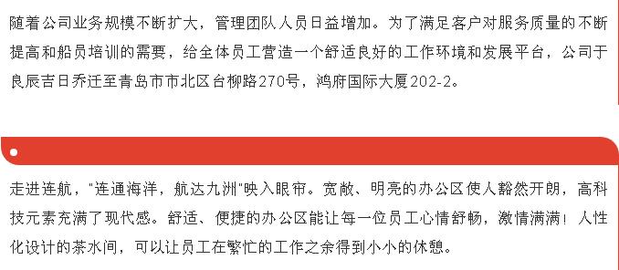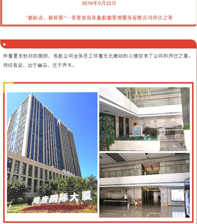 “新起點、新征程”-恭賀青島連航船舶管理服務有限公司喬遷之喜